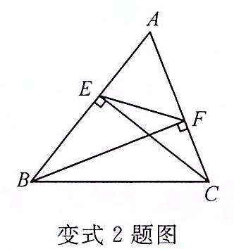 【变式 2】如图,在$\triangle ABC$中,$CE\perp AB$,$BF\perp AC$。若$\angle A = 60°$,$S_{\triangle AEF} = 2$,则$S_{\triangle ABC} =$