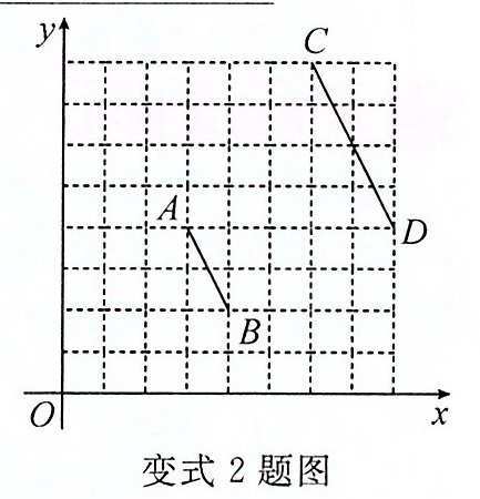 【变式 2】线段 $AB$,$CD$ 在平面直角坐标系中的位置如图所示,$O$ 为坐标原点,$A$,$B$,$C$,$D$ 均在格点上,线段 $AB$,$CD$ 是位似图形,则位似中心的坐标是