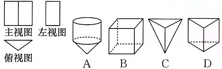 )【分析】主视图、左视图、俯视图是分别从物体正面、左面和上面看所得到的图形.结合图形,使用排除法来解答.俯视图为三角形,故可排除 A,B 选项;左视图是矩形,可排除 C 选项.