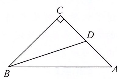 【例】 如图,在 $ Rt \triangle ABC $ 中,$ \angle C = 90° $,$ BC = AC $,$ D $ 为 $ AC $ 的中点,求 $ \tan \angle ABD $ 的值。