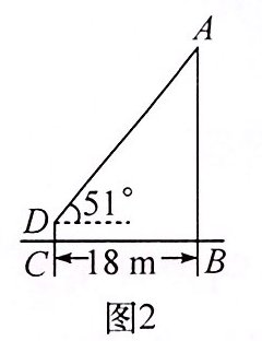 ∴AE=tan∠ADE·DE=tan51°×18≈1.23×18=22.14(m).