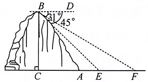 ∴CE=BC=80 m.在Rt△BCF中,BC=80 m,∠BFC=∠DBF=31°,tan∠BFC=$\frac{BC}{CF}$,