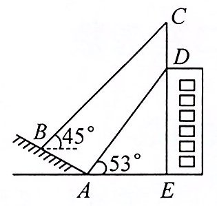 ∴CE=CN+NE=(5$\sqrt{3}$+26)米.在Rt△ADE中,∠DAE=53°,AE=21米,