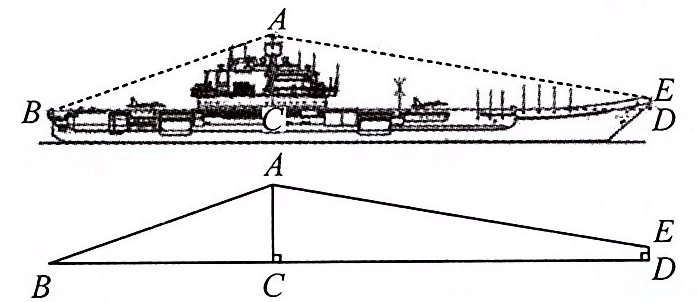 (2)请计算舰岛 $ AC $ 的高度(结果精确到 $ 1 m $)。