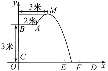 【分析】(1)根据抛物线顶点坐标 $M(3,4)$,可设抛物线表达式为 $y = a(x - 3)^2 + 4$,将 $A(2,3)$ 代入可得;(2)在(1)中函数表达式中令 $y = 0$,求出 $x$ 即可;(3)若跳水运动员在区域 $EF$ 内(含点 $E$,$F$)入水达到训练要求,则在函数 $y = a(x - 3)^2 + k$ 中当 $x=\frac{9}{2}$ 米,$y\geqslant0$,当 $x = 5$ 米时 $y\leqslant0$,解不等式即可得。