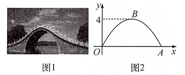 【变式】如图 1,桥拱截面 $OBA$ 可视为抛物线的一部分,在某一时刻,桥拱内的水面宽 $OA = 8$ m,桥拱顶点 $B$ 到水面的距离是 $4$ m。