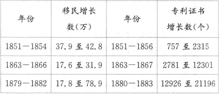[材料解读] 从数据中可以看出,随着外来移民数量的增加,专利证书的增长也呈现出显著的上升趋势。说明移民促进了美国的技术创新和发明创造,为美国的经济发展和社会进步奠定基础。