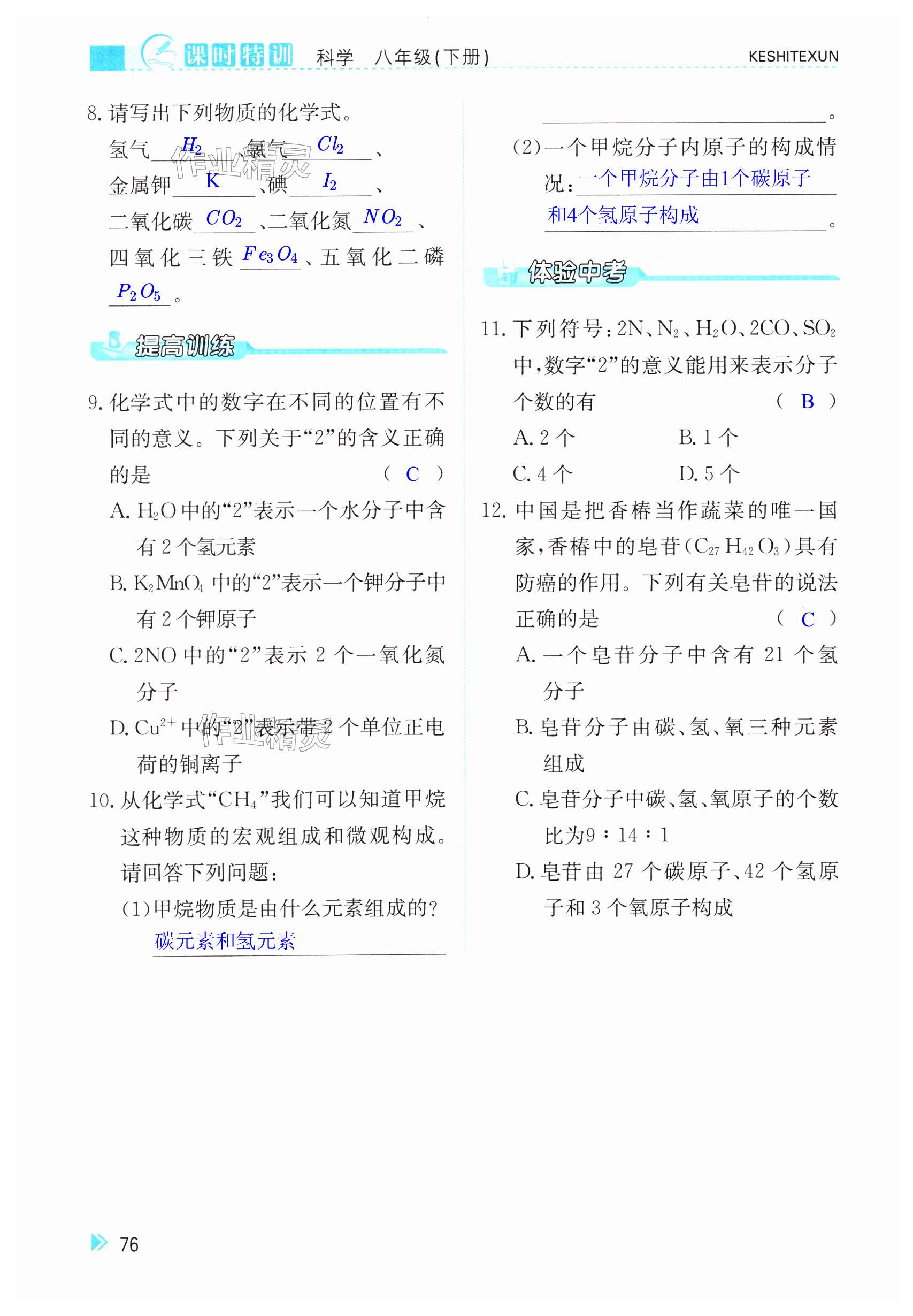 注:目前有些书本章节名称可能整理的还不是很完善,但都是按照顺序排列的,请同学们按照顺序仔细查找。练习册 2025年课时特训八年级科学下册浙教版 答案主要是用来给同学们做完题方便对答案用的,请勿直接抄袭。