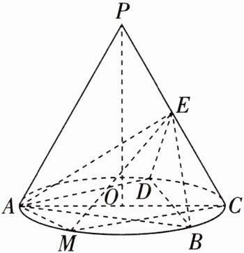 (2)$M$为底面圆$O$的劣弧$AB$上一点,且$\angle ACM = 30^{\circ}$.求平面$AME$与平面$PAC$夹角的余弦值.