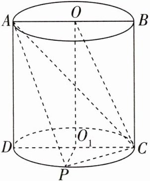 8.(2024广东一模,16)如图,已知圆柱$OO_{1}$的轴截面$ABCD$是边长为$2$的正方形,点$P$是圆$O_{1}$上异于点$C$,$D$的任意一点.