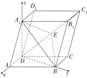(2)由(1)知,$DA$,$DB$,$DA_{1}$两两垂直,以$D$为坐标原点,分别以向量$\overrightarrow{DA}$,$\overrightarrow{DB}$,$\overrightarrow{DA_{1}}$的方向为$x$,$y$,$z$轴正方向,建立如图所示的空间直角坐标系$D - xyz$。