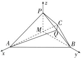 故以$M$为原点,直线$MA$,$MB$,$MP$分别为$x$,$y$,$z$轴建立空间直角坐标系,如图,