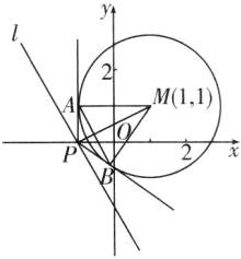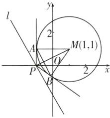 $(x - 1)^{2}+(y - 1)^{2}=4$,则$r = 2$,$M(1,1)$,如图,由题可知$AB\perp PM$,