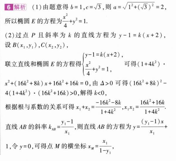 6.(2022北京,19,15分,中)已知椭圆$E:\frac{x^{2}}{a^{2}}+\frac{y^{2}}{b^{2}}=1(a>b>0)$的一个顶点为$A(0,1)$,焦距为$2\sqrt{3}$.