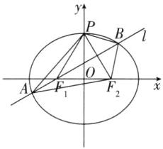 由B知直线$l$为$\angle PF_{1}F_{2}$的平分线所在直线,则点$P$,$F_{2}$关于直线$l$对称,所以$\triangle PAB$的周长即为$\triangle F_{2}AB$的周长。