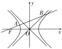 10.(2022浙江,16,4分,中)已知双曲线$\frac{x^{2}}{a^{2}}-\frac{y^{2}}{b^{2}} = 1(a>0,b>0)$的左焦点为$F$,过$F$且斜率为$\frac{b}{4a}$的直线交双曲线于点$A(x_1,y_1)$,交双曲线的渐近线于点$B(x_2,y_2)$且$x_1<0<x_2$。若$|FB| = 3|FA|$,则双曲线的离心率是________。