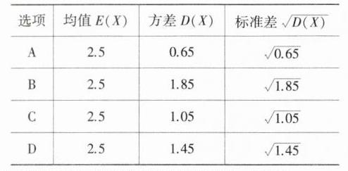 xPi,方差D(X)=∑[xi−E(X)]².p以及方差与标准差的关系,得各选项对应样本的标准差如下表