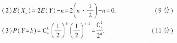 解析设质点n次移动中向右移动的次数为Y,则Y~B(n,$\frac{1}{2}$),xn=−(n−Y)=2−n. (3分)