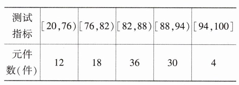 (新定义理解)(2024浙江金丽衢十二校联考二,17)某工厂生产某种元件,其质量按测试指标划分为指标大于或等于82为合格品,小于82为次品,现抽取这种元件100件进行检测,检测结果统计如下表: