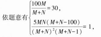 (ii)由(i)可知X的均值E(X)=E(X)=$\frac{100M}{M+N}$由公式得X的方差D(X1)=$\frac{100MN(M+N−100)}{(M+N)²(M+N−1)}$,所以D(x)=$\frac{5MN(M+N−100)}{(M+N)²(M+N−1)}$