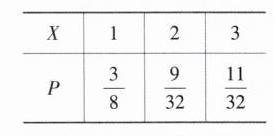 数学期望 $E(X)=1\times\frac{3}{8}+2\times\frac{9}{32}+3\times\frac{11}{32}=\frac{63}{32}$。