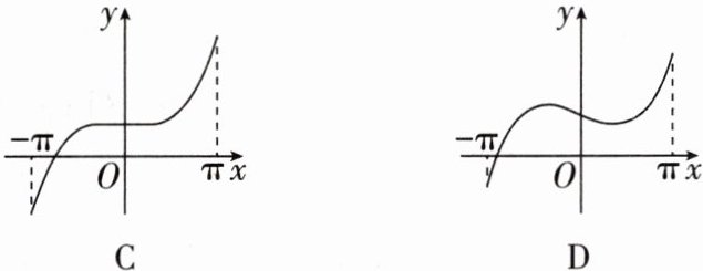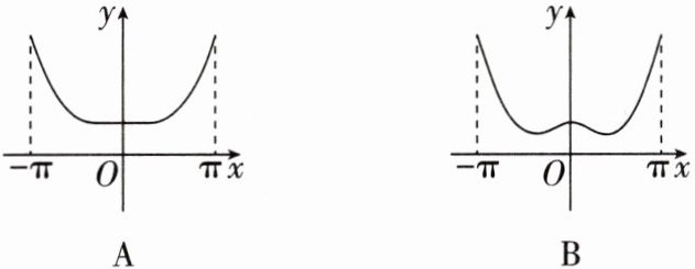 2. (2024福建高中毕业班适应性测试,3) 函数$f(x)=\frac{1}{2}x^{2}+\cos x$在$[-\pi,\pi]$的图象大致为 ( )