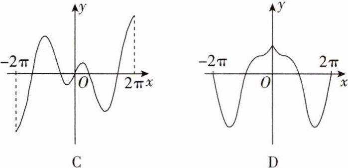 例1 (2024浙江镇海中学期末,7)函数$f(x)=\frac{5\sin x}{e^{|x|}}+x\cos x$在$[-2\pi,2\pi]$上的图象大致为 ( )