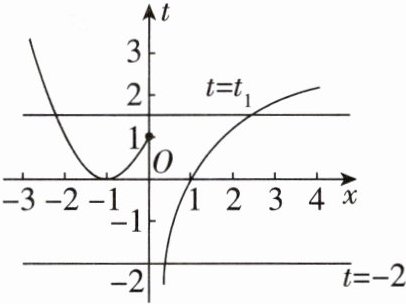 例2 已知函数$f(x)=\begin{cases}\ln x-\frac{1}{x},x > 0,\\x^{2}+2x,x\leqslant0,\end{cases}$则函数$y = f(f(x)+1)$的零点个数是 ( )