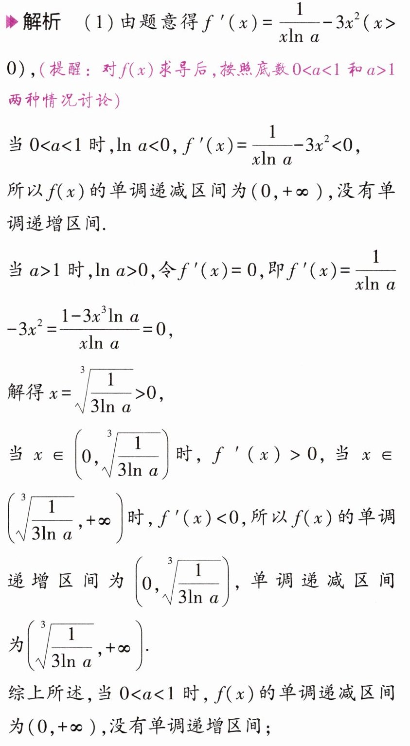 例2 (2024湖北武汉华中师范大学第一附属中学期中)已知函数$f(x)=\log_{a}x - x^{3}(a>0$且$a\neq1)$.