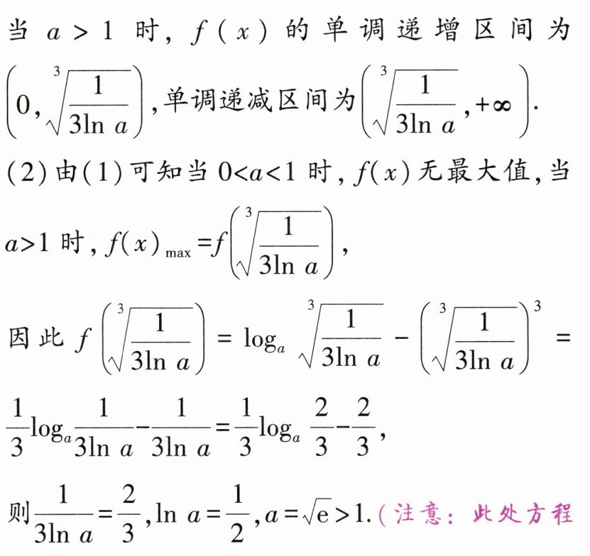(2)若函数$f(x)$有最大值$\frac{1}{3}\log_{a}\frac{2}{3}-\frac{2}{3}$,求实数$a$的值.