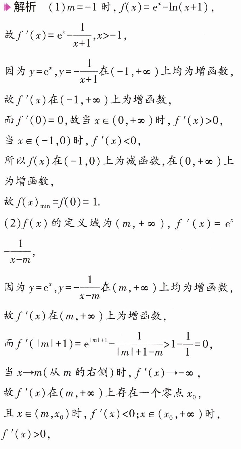 例3(2024广东百校联考)已知函数$f(x)=e^x-\ln(x - m)$(其中e为自然对数的底数)。