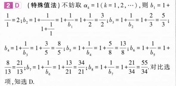 2.(2022全国乙理,4,5分,中)嫦娥二号卫星在完成探月任务后,继续进行深空探测,成为我国第一颗环绕太阳飞行的人造行星.为研究嫦娥二号绕日周期与地球绕日周期的比值,用到数列$\{ b_{n}\}$:$b_{1}=1+\frac{1}{\alpha_{1}}$,$b_{2}=1+\frac{1}{\alpha_{1}+\frac{1}{\alpha_{2}}}$,$b_{3}=1+\frac{1}{\alpha_{1}+\frac{1}{\alpha_{2}+\frac{1}{\alpha_{3}}}}$,…,依此类推,其中$\alpha_{k}\in\mathbf{N}^{*}(k = 1,2,\cdots)$.则 ( )