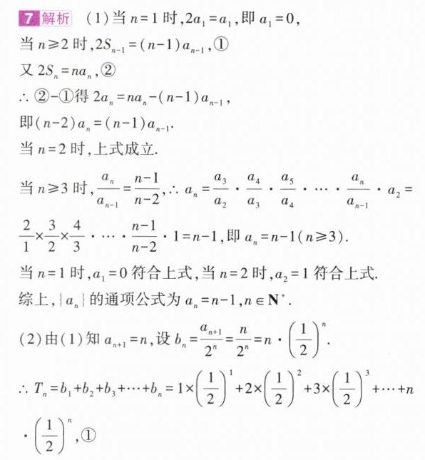 7.(2023全国甲理,17,12分,中)记$S_{n}$为数列$\{ a_{n}\}$的前$n$项和,已知$a_{2}=1,2S_{n}=na_{n}$.