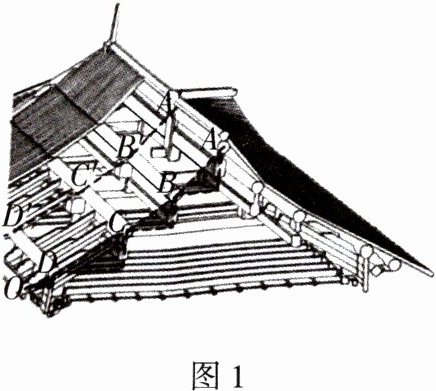 1.(2022新高考II,3,5分,中)图1是中国古代建筑中的举架结构,$AA',BB',CC',DD'$是桁,相邻桁的水平距离称为步,垂直距离称为举.图2是某古代建筑屋顶截面的示意图,其中$DD_{1},CC_{1},BB_{1},AA_{1}$是举,$OD_{1},DC_{1},CB_{1},BA_{1}$是相等的步,相邻桁的举步之比分别为$\frac{DD_{1}}{OD_{1}} = 0.5,\frac{CC_{1}}{DC_{1}}=k_{1},\frac{BB_{1}}{CB_{1}}=k_{2},\frac{AA_{1}}{BA_{1}}=k_{3}$.已知$k_{1},k_{2},k_{3}$成公差为0.1的等差数列,且直线$OA$的斜率为0.725,则$k_{3}=$( )