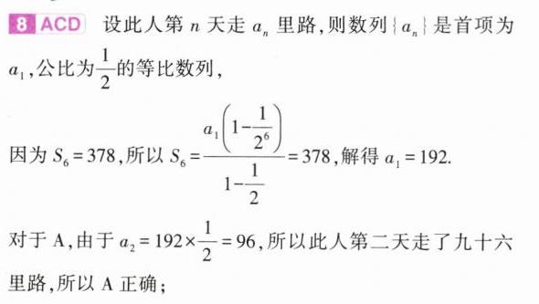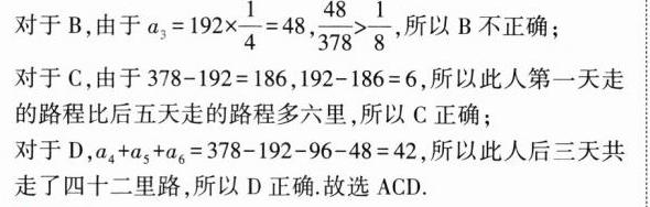8.(多选)(2024湖南长沙雅礼中学二模,10)在《增删算法统宗》中有这样一则故事:“三百七十八里关,初行健步不为难;次日脚痛减一半,如此六日过其关.”则下列说法正确的是( )