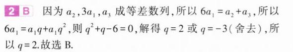 2.(2024广东惠州一模,2)设正项等比数列$\{ a_{n}\}$的公比为$q$,若$a_{2},3a_{1},a_{3}$成等差数列,则$q=$( )