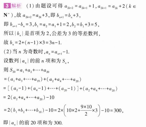 3.(2021新高考I,17,10分,易)已知数列$\{ a_{n}\}$满足$a_{1}=1,a_{n + 1}=\begin{cases}a_{n}+1,n为奇数,\\a_{n}+2,n为偶数.\end{cases}$