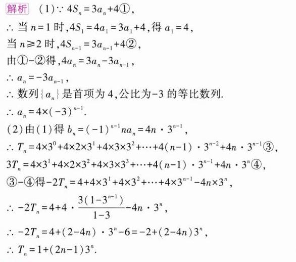 (2024全国甲理,18,12分,易)记$S_{n}$为数列$\{ a_{n}\}$的前$n$项和,已知$4S_{n}=3a_{n}+4$.