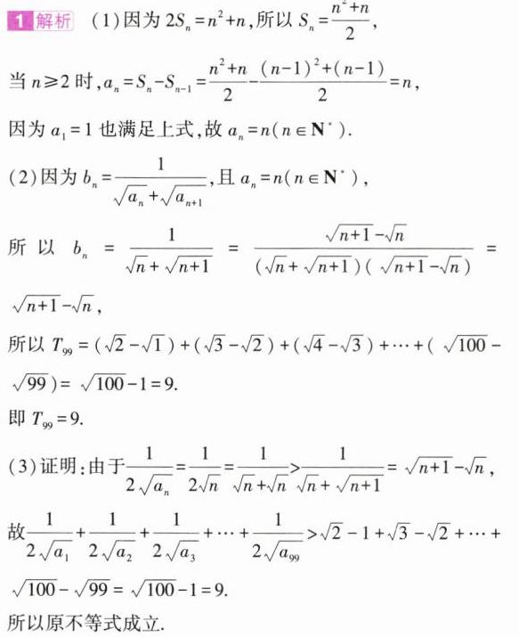 1. (2024甘肃二诊,17)设数列$\{ a_{n}\}$的前$n$项和为$S_{n}$,$a_{1}=1$,$2S_{n}=n^{2}+n(n\in N^{*})$.