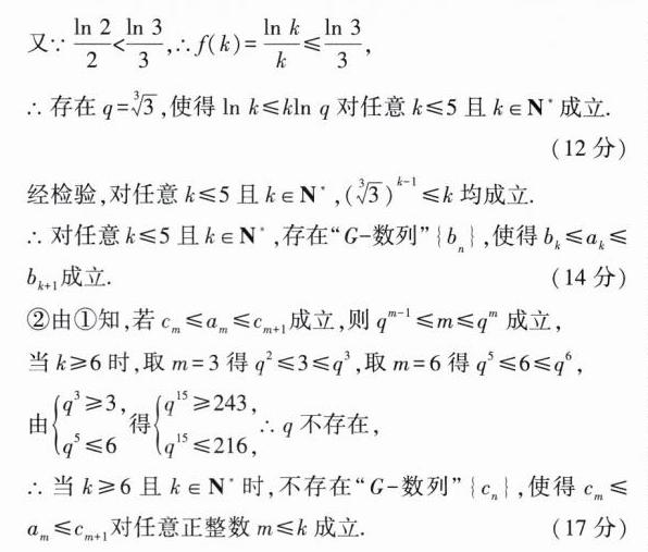 ②当$k\geqslant6$且$k\in N^{*}$时,不存在“$G -$数列”$\{ c_{n}\}$,使得$c_{m}\leqslant a_{m}\leqslant c_{m + 1}$对任意正整数$m\leqslant k$成立.