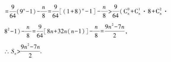 ,设数列$\{ c_{n}\}$的前$n$项和为$S_{n}$,证明:当$n>3$时,$S_{n}>\frac{9n^{2}-7n}{2}$.