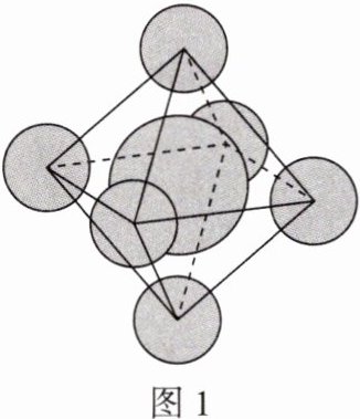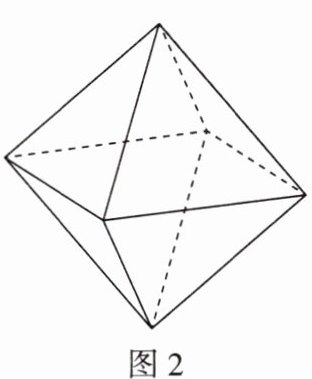 7.(2024福建莆田二模,4)柏拉图多面体是指每个面都是全等正多边形的正多面体,具有严格对称,结构等价的特点.六氟化硫具有良好的绝缘性和广泛的应用性.将六氟化硫分子中的氟原子按图1所示方式连接可得正八面体(如图2).若正八面体外接球的体积为$\frac{4\pi}{3}$,则此正八面体的表面积为 ( )