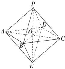 D:如图,连接$AC$,$BD$,$PE$,设$AC\cap BD = O$,根据正八面体的对称性可知,$PE$过点$O$,$PO\perp$平面$ABCD$,又$AO\subset$平面$ABCD$,所以$PO\perp AO$。