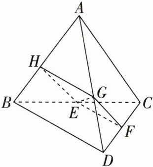 设$GF\cap AC = K$,则$K\in AC,K\in GF$,又$AC\subset$平面$ABC,FG\subset$平面$EFG$,所以$K\in$平面$ABC,K\in$平面$EFG$. 又平面$ABC\cap$平面$EFG = HE$,所以$K\in HE$,所以$HE,GF,AC$相交于一点.