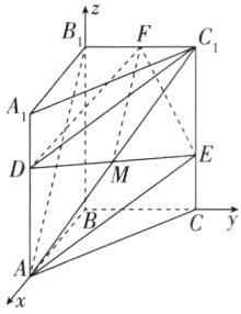 1.(创新考法)(2024山东临沂一模,17)如图,在直三棱柱$ABC - A_{1}B_{1}C_{1}$中,$AB = BC = 2,AA_{1}=3$,点$D,E$分别在棱$AA_{1},CC_{1}$上,$AD = 2DA_{1},C_{1}E = 2EC$,$F$为$B_{1}C_{1}$的中点.