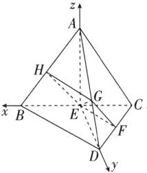 (2) 若第(1)问中选①. 由(1)知,$BD//$平面$EFG$. 所以点$B$到平面$EFG$的距离即为$BD$与平面$EFG$的距离. 若第(1)问中选②. 因为$E,F$分别为$BC,CD$的中点,所以$EF// BD$. 又$BD\not\subset$平面$EFG,EF\subset$平面$EFG$,所以$BD//$平面$EFG$. 所以点$B$到平面$EFG$的距离即为$BD$与平面$EFG$的距离. 连接$EA,ED$,因为$\triangle ABC,\triangle BCD$均为正三角形,$E$为$BC$的中点,所以$EA\perp BC,ED\perp BC$. 又平面$ABC\perp$平面$BCD$,平面$ABC\cap$平面$BCD = BC,AE\subset$平面$ABC$,所以$AE\perp$平面$BCD$,又$ED\subset$平面$BCD$,所以$EA\perp ED$. 以$\{\overrightarrow{EB},\overrightarrow{ED},\overrightarrow{EA}\}$为正交基底建立如图所示空间直角坐标系,