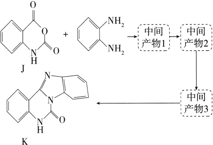 (6)J→K的反应过程如下图,中间产物1、2均含有三个六元环。
