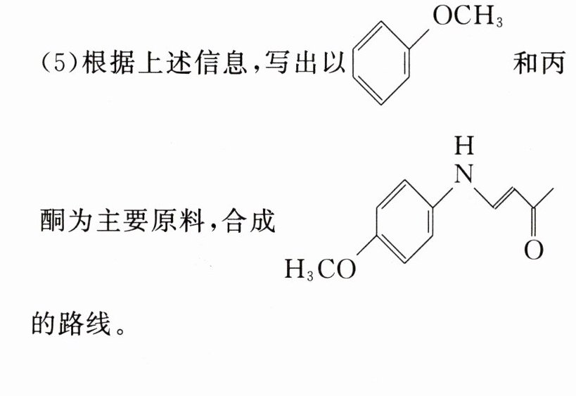 (5)根据I的结构简式可知其分子式为C₈H₅NO₂,不饱和度为7,M为芳香族化合物且能与NaHCO₃反应,则M中含有苯环和羧基,此外还有1个C原子、1个N原子和2个不饱和度,故还存在氰基;核磁共振氢谱有3组峰,峰面积比为2∶2∶1,故羧基和氰基处于对位,符合条件的M的结构简式为