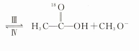 7 B 由题图中反应进程可知正反应中反应Ⅰ活化能最大,是决速步;逆反应中反应Ⅳ活化能最大,是决速步,A项错误。已知$\begin{array}{r} ^{18}O^{-}\\ H_{3}C-C-OCH_{3}\rightleftharpoons H_{3}C-C-OCH_{3}\\ OH\end{array} $为快速平衡,结合反应Ⅱ可知溶液中存在$^{18}OH^{-}$,B项正确。结合反应Ⅰ、Ⅱ、Ⅲ、Ⅳ和$\begin{array}{r} ^{18}O^{-}\\ H_{3}C-C-OCH_{3}\rightleftharpoons \\ OH\end{array} $ $\begin{array}{r} ^{18}OH\\ H_{3}C-C-OCH_{3}\\ O^{-}\end{array} $可知,$^{18}O$存在于乙酸甲酯分子、乙酸分子、氢氧根离子中,不会存在于甲醇分子中,C项错误。图示总反应的焓变 = 反应Ⅰ的焓变 + 反应Ⅲ的焓变 =(反应Ⅰ的活化能 - 反应Ⅱ的活化能)+(反应Ⅲ的活化能 - 反应Ⅳ的活化能)≠反应Ⅰ的活化能 - 反应Ⅳ的活化能,D项错误。
