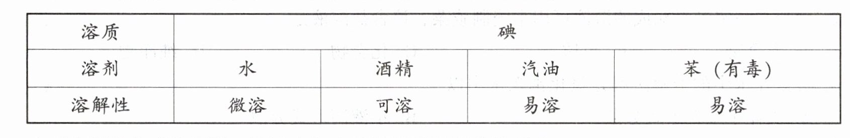 12. 衣服上沾有碘很难洗净,碘在下列四种不同溶剂中的溶解性如下表所示: